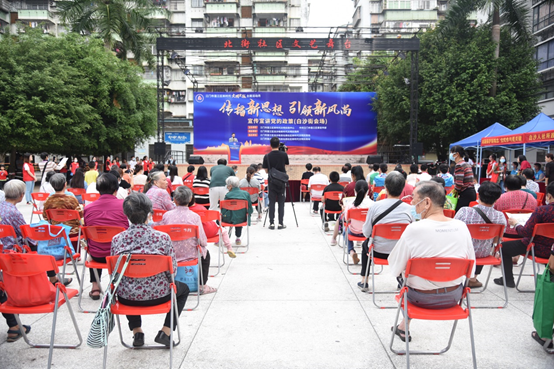新时代文明实践中心、区委宣传部主办,白沙街新时代文明实践所承办,白沙街良化南、良化西社区新时代文明实践站协办的“传播新思想 引领新风尚”——宣传宣讲党的政策主题宣传活动在良化西社区文体广场举行,活动以群众喜闻乐见的方式,利用社区新时代文明实践站的阵地资源,进一步学习宣传习近平新时代中国特色社会主义思想,共建和谐美好新景象。
