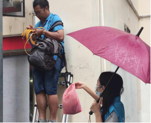 美景社区网格员与工作人员配合开展抢修工作