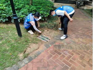 雅怡社区网格员对低洼区域进行检查