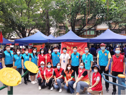 除了“双报到”党员在防疫一线积极奔走,各社区“大党委”成员单位也纷纷投入到志愿工作中。9月6日,华东社区和华园社区的“双报到”党员接到社区通知后,纷纷来到华园社区公园采样点,加入抗疫奋战的志愿服务中。其中江门日报社作为华园社区的结对单位,同时也是华东社区的双报到单位,今天带来一支强大的志愿队“红色报人 党员突击队”,他们有的负责引导群众出示粤康码,有的负责帮助老人做好葵花码,有的负责维持秩序,在场的每位党员都各司其职,在自己的岗位上坚守着,他们用实际行动践行为人民服务的初心,铸就抗击疫情的坚固防线。美景社区“大党委”成员单位市政协机关党委组织党员志愿者身披红色志愿服马甲支援美景广场核酸采样点,守好“入门关”,指引、协助居民有序高效进行核酸采样,积极引导现场群众排队采样,提醒佩戴口罩,保持“一米线”距离,为群众提供葵花码,大大畅通了绿色通道的顺畅性,减少特殊人群排队时间。