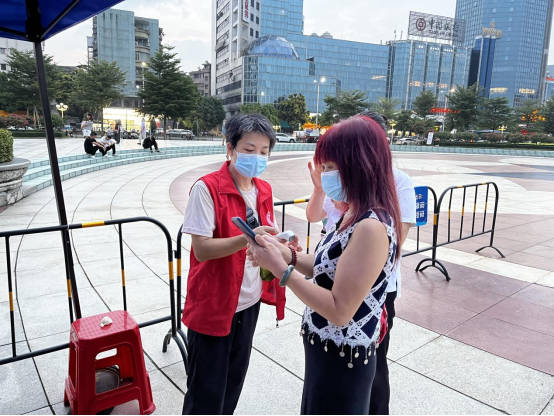 活动前期,许多志愿者积极与社区联系,参与疫情防控志愿服务,参加核酸检测工作。在充分做好一切准备后,东湖广场重点人群核酸检测点的工作紧锣密鼓、有条不紊地开展起来,社区团干、青年团员、各类志愿者们有的身穿红马甲站帮助居民登记检测信息、指引检测路线维持秩序、积极宣传防疫注意事项,有的身穿隔离衣为进行检测的居民扫描核酸检测码,展现奉献、友爱、互助、进步的志愿者精神。