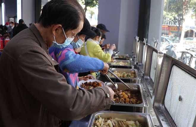 “今天很开心,全场任吃,而且饭菜也很合我们老人家的胃口,感谢政府对我们独居老人的记挂和关心。”在源供优选人民食堂自助餐厅(金华店),今年63岁的庄镇雄自助挑选了肉片、冬菇、番茄炒蛋等食物,“我选的都是一些有利于提高自身免疫力的食物。每个老人家的口味和身体状况各不相同,自助餐可以自由选择,爱吃什么选什么,很方便。”庄镇雄说。