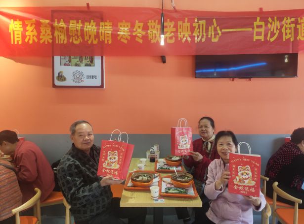为进一步弘扬中华民族尊老、爱老的优良传统美德,切实深化做好长者民生关爱服务,1月17日,白沙街道联动辖区爱心餐企,开展“情系桑榆慰晚晴 寒冬敬老映初心”岁末银龄助餐送暖活动,向辖区独居、孤寡长者群体送去党和政府及爱心企业的节日问候,着力提升长者的幸福感和归属感。近200名独居孤寡长者受邀参加活动,提前吃上“幸福团年饭”,共享新春的温暖欢乐。