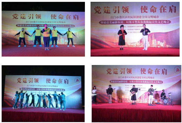 为深入推进全国文明城市创建工作,杜阮镇南芦村委会不断加强创文各项工作部署及落实。2020年12月13日晚,在杜阮镇新时代文明实践所的指导下,南芦村新时代文明实践站在村内主办了一场“创建全国文明城市暨建设美丽新农村、垃圾分类从你我做起”宣传文艺晚会。本场晚会以“党建引领、使命在肩”为主题,由江门市仁爱社会工作综合服务中心承办。杜阮镇委委员高豪领等领导及南芦村委会班子成员出席晚会,有300多名村民到晚会现场观看。