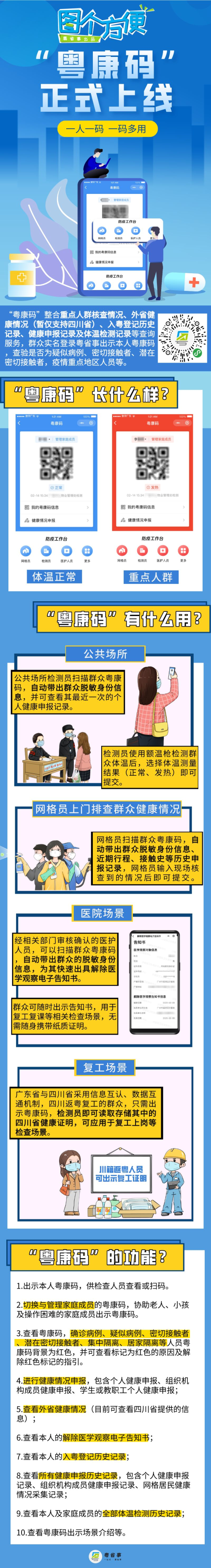 · 查看外省健康情况,川籍入粤复工的群众可以查看四川省相关部门开具的返粤健康证明。
