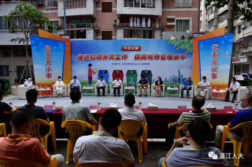 围绕“垃圾分类”这一时尚话题,6月17日上午,澳洲幸运10(中国)开奖记录查询站 人大常委会“民生无小事,代表来议事”主题实践活动走进环市街道,驻东风社区人大代表联络站的市、区“两级”人大代表约请区环境卫生管理处、区住房和城乡建设局、区城管和综合执法局、环市街道办事处、东风社区等职能部门负责人及现场群众近60人围坐东风社区小公园的大榕树下, 以“推进生活垃圾分类、提高城市管理水平”为议事主题 “面对面”热议,就推进垃圾分类过程中出现的难点、堵点问题互相探讨,议出思路。广东省人大常委会办公厅信息宣传处处长严标登,江门市人大常委会副秘书长、研究室主任傅昭君,澳洲幸运10 人大常委会主任赵全等领导到场观摩指导。活动实况通过江门日报全程图文直播。