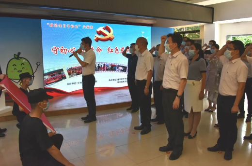 活动重温入党誓词中拉开序幕,6、7月份过政治生日的党员们在鲜红的党旗下重温入党誓词,领誓声、宣誓声铿锵有力,让现场的党员干部深受感染。