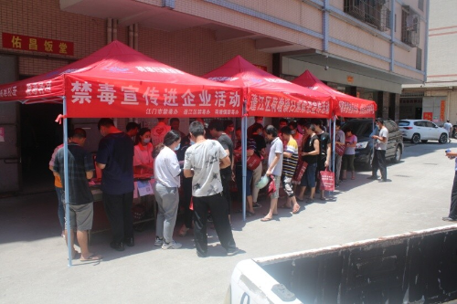7月14日上午,荷塘镇扫黑除恶办联合镇禁毒办、荷塘检察室、荷塘派出所及为民村委会到新雄利工业园开展扫黑除恶进企业摆摊宣传活动。镇委副书记温文辉参加了活动。