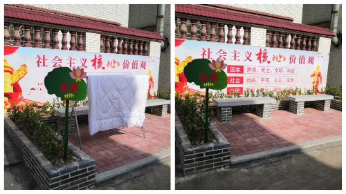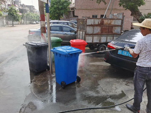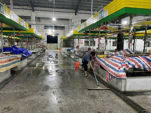 ▲高村村整改乱晾晒现象,在夜间对市场进行清洗保洁
