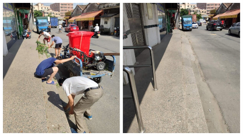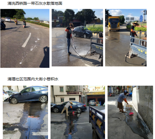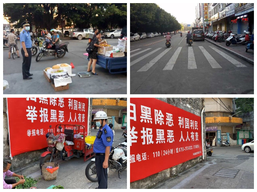 镇创文督查组保持整日持续在镇辖区内开展创文对标督查工作,发现能及时解决的问题在现场自行整治清理,对需要共管问题立即反馈责任单位和属地村居迅速跟进,重点在镇政府周边800米范围内督查创文工作;交警中队在镇辖区内整治车辆违停、占用停车位现象、教育商铺店主做好门前停车秩序维护,并派发宣传交通秩序单张;城管中队在中心市场等人流密集区域整治流动摊贩及商铺占道经营,清理拆乱拉挂横幅;环卫站在圩镇社区及镇主干道路进行清扫保洁、垃圾清运、清理小广告“牛皮癣”工作,修复路面破损和坑洼,清洗、消毒垃圾桶并做好河道保洁工作;中心校开展创文清洁行动;路桥公司对中兴二路破损路面进行修补。