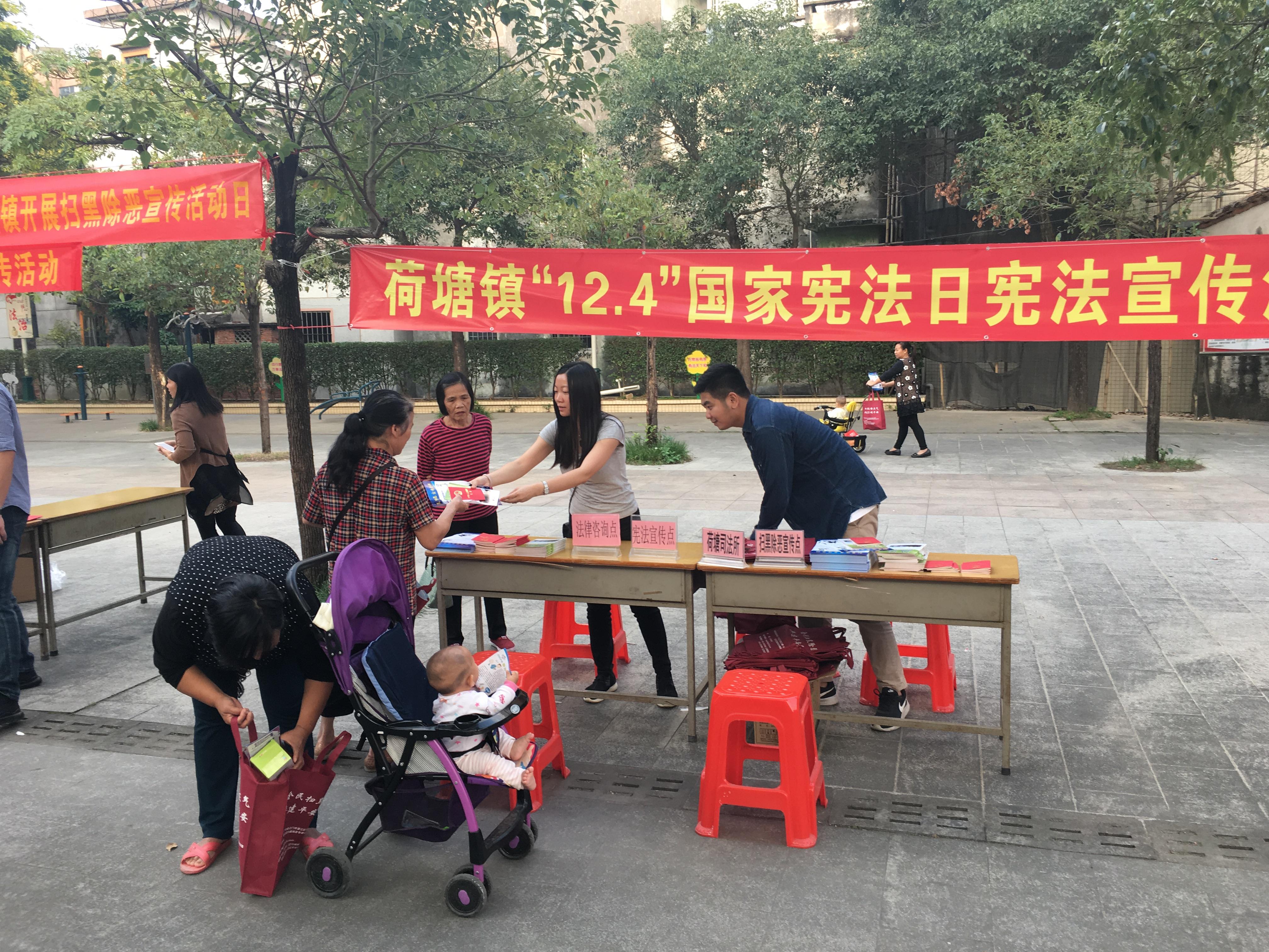 近期恰逢“12·4”国家宪法日,荷塘镇积极响应中央、省、市、区的号召,参与宪法宣传暨扫黑除恶主题系列活动,以人民群众喜闻乐见的普法形式,让社会各界树立了尊崇宪法、学习宪法、遵守宪法、维护宪法、运用宪法的坚定信仰,取得良好的普法效果!
