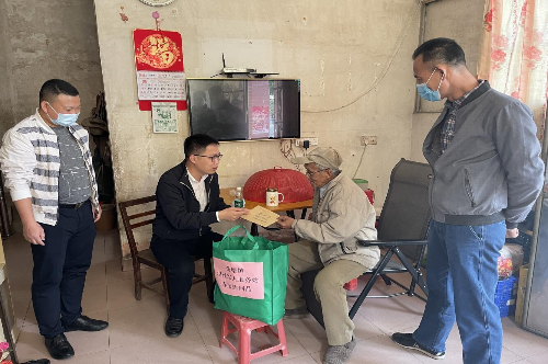 周镇长一行人到塔岗村慰问退役军人胡锦烈