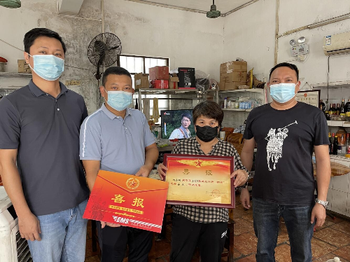 到康溪村退役军人何嘉明家中送上“四有”优秀士兵喜报
