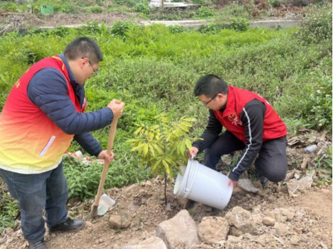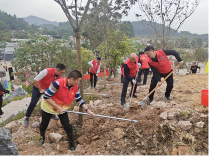 莲塘村党支部广泛发动党员义工、村民小组长、村民代表、驻村工作组及结对单位区纪委监委办公室党员干部等开展绿化植树活动