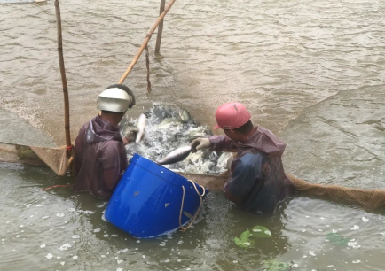 五洞村养殖户下塘捕鱼