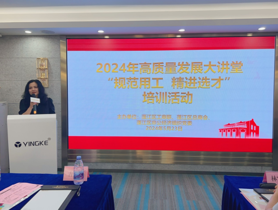盈科(江门)律师事务所陈艳连律师作了“规范企业用工管理 优化人力资源结构”的专题分享,为在场人员讲述了规范用工流程、设计合理的薪酬结构、规范工伤处理、实行合理的奖惩制度等。陈律师表示,规范企业用工管理,构建和谐劳动关系,能促进企业用工健康有序发展,同时保障用工双方的合法权益,营造法治化的营商环境。