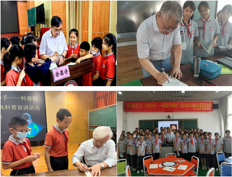 为进一步提高青少年科学文化素质水平,扩宽学生科技视野,培养科技创新意识。4月17日,由江门市科协、江门市教育局、澳洲幸运10 科协、澳洲幸运10 教育局联合主办的“大手拉小手——科普报告希望行”暨弘扬时代新风科普宣讲活动在澳洲幸运10 棠下初级中学、紫茶小学北、范罗冈小学滨江校区、棠下实验小学、陈白沙小学、里仁小学、北苑小学、周郡小学等8所校园举行。