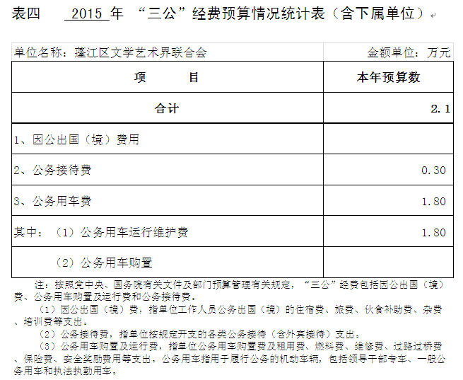 四、 “三公”经费预算情况统计表