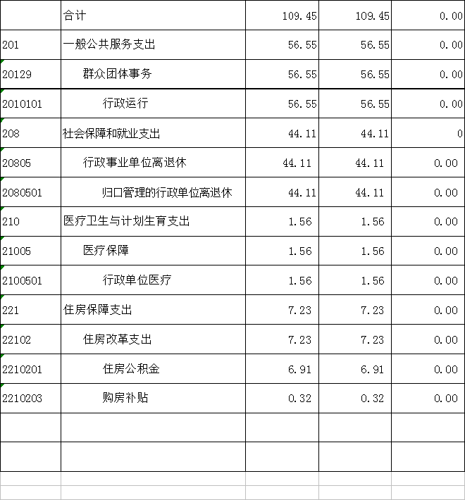 基本支出(含工资福利性支出、对个人和家庭补助支出和公用支出)109.45万元。