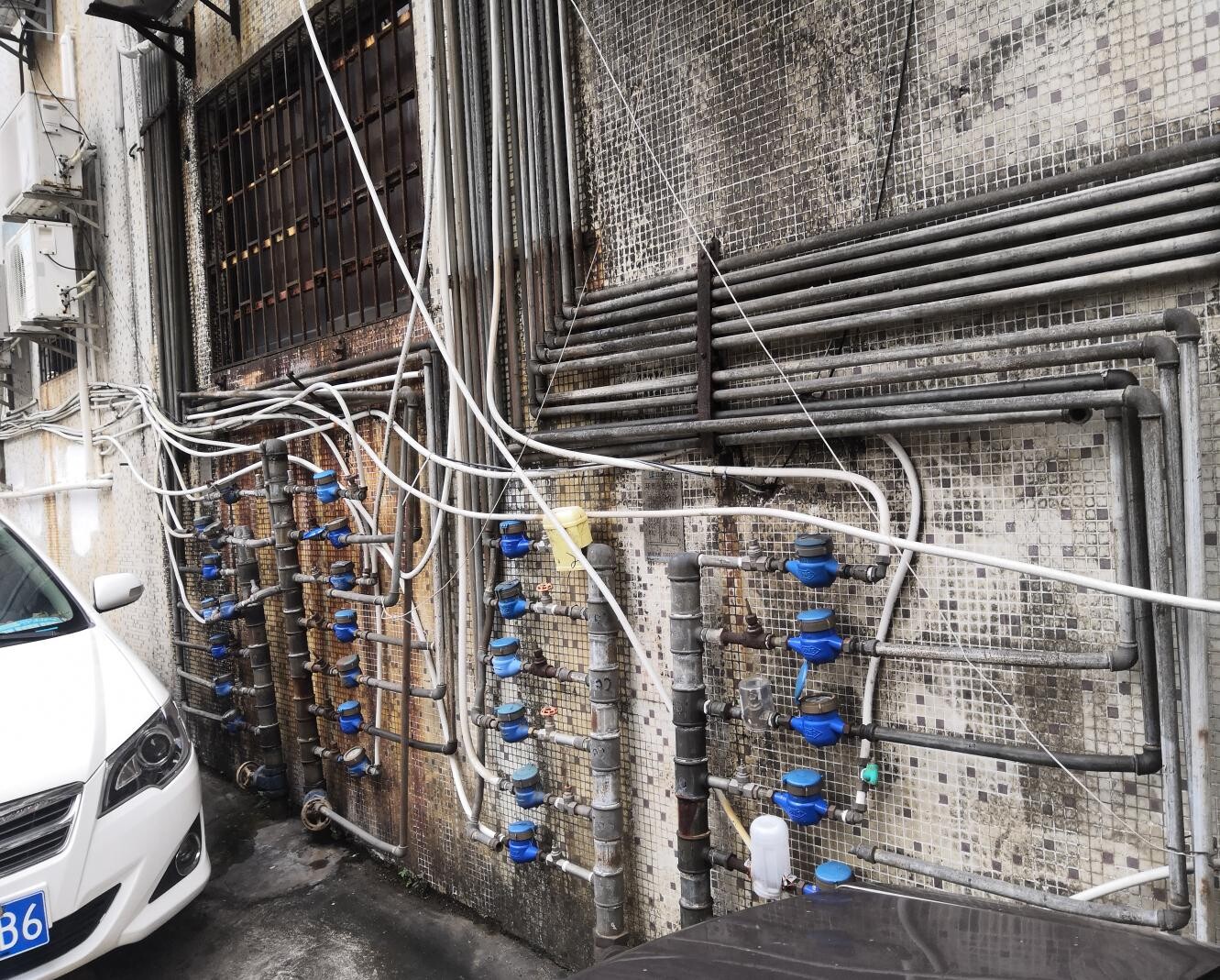 改造前乱驳接的水管