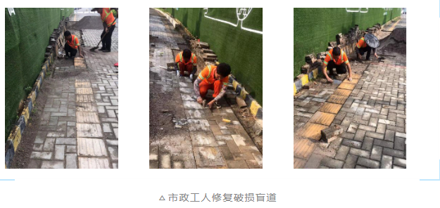 截至目前,共修复市区道路人行道盲道问题104处共474米。在老旧社区改造项目中,对农林社区、长塘社区、东华社区、象山社区等八个社区十条未设置盲道的人行道进行改造,改造长度合计7660米,均铺设盲道砖并在路口设置三面坡。通过道路改造,实现残疾人和老年人出行无障碍。
