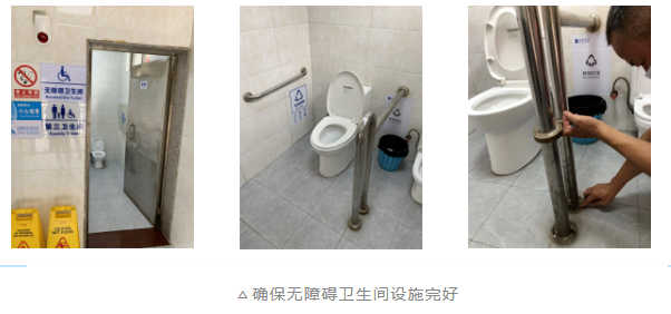 通过网格巡查队伍,对辖区110个公共卫生间无障碍设施使用情况进行巡查,重点对无障碍卫生间封闭、无障碍标识不清晰、未张贴求助电话、坐便器的扶手栏杆缺失等问题进行排查整改。目前,无障碍卫生间设施设置完整率达到100%,实现残疾人和老年人使用无障碍。