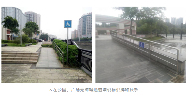 目前,各公园出入口均设置最少1条设有轮椅通道、扶手或缘石坡道等无障碍的通道,在无法设置无障碍设施的个别公共场所已采取公布求助电话的方式,满足市民群众有关诉求,所有公园内均有设置无障碍通道及其他无障碍标识、设施等。通过优化景区公园无障碍设施,实现残疾人和老年人悠闲无障碍。