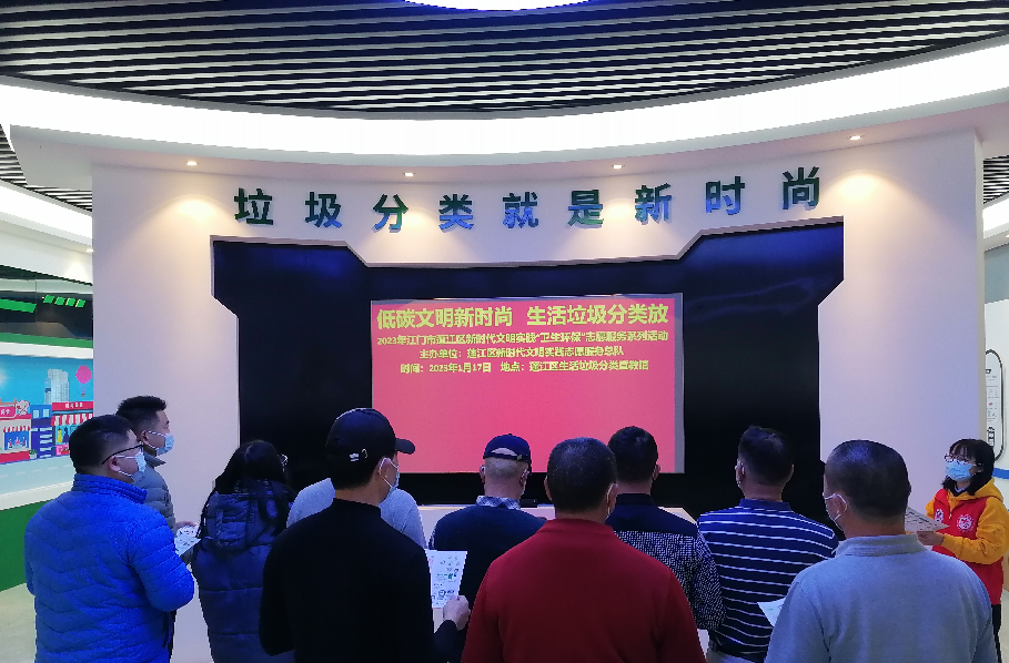 志愿者向市民群众介绍垃圾分类工作现状和意义