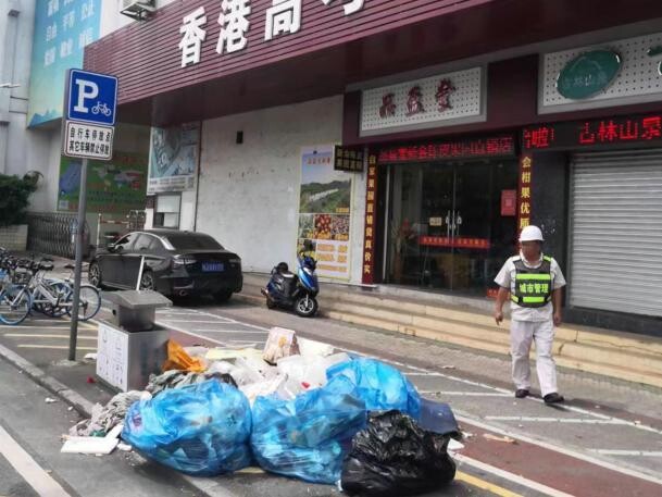 近日,网格员林卫光在巡查中发现建设路某商铺门前垃圾桶旁堆放大量垃圾,严重影响市容和环境卫生,他立即拍照取证并上报局指挥中心,指挥中心马上调度执法人员赶往现场处置,同时调度属地环卫工人前往清理堆积的垃圾,短短15分钟就恢复城市容貌。经执法人员四处走访和对垃圾分析,马上锁定了相关商铺并于当天下午约谈当事人作询问笔录和普法教育,对当事人的违法行为进行依法查处。