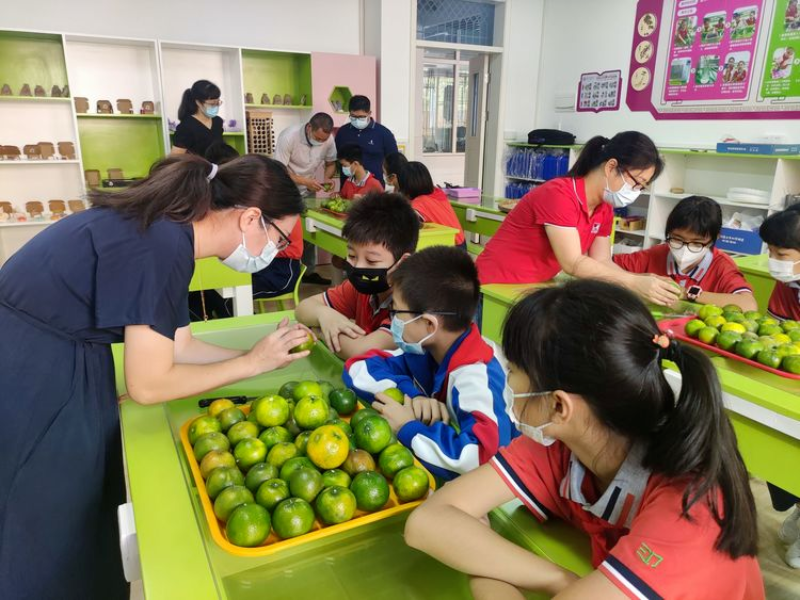 紫茶小学中草药社团开展陈皮采摘、晒皮活动。