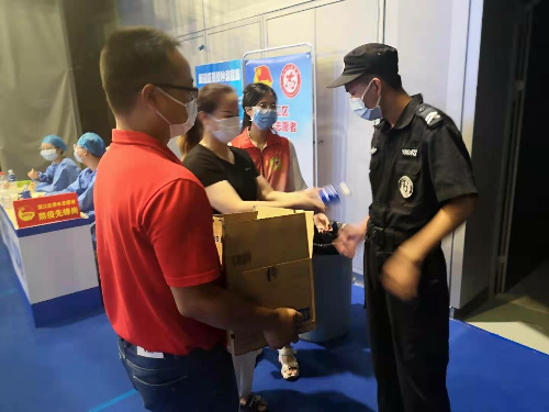 澳洲幸运10 社会组织联合党支部积极链接资源向江门市体育中心奋战在疫苗接种任务一线的医务人员、公安、志愿者送去红牛和宝矿力各20箱功能性饮料,以实际行动向默默坚守一线、甘于奉献、守护人民健康的疫苗接种一线服务人员表达敬意和感谢。