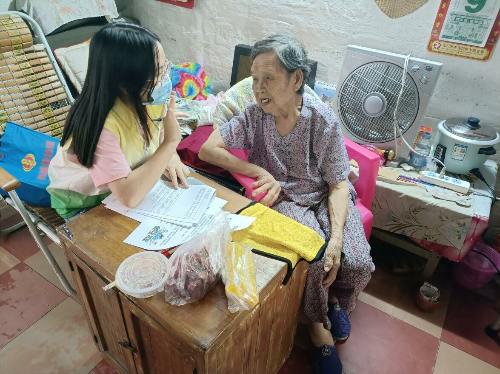 “青婆婆”是长者饭堂送餐3年的服务对象,清婆婆只会乡下的方言,不认识字,语言沟通有障碍。起初提供服务的时候,对送餐员来说与清婆婆的沟通存在不少困难,我们不知道送给她的饭菜合不合胃口,她能不能吃等。经过一段时间的磨合,送餐阿姨跟婆婆之间建立一种亲切感觉,婆婆一个动作或者一句方言,我们能从中读懂婆婆的需要。2019年,青婆婆不慎跌倒骨折一直住院做物理治疗,血糖又比较高,每天都要打胰岛素。一天下箸大雨,送餐员去医院送餐给婆婆,婆婆面带笑容一直拉着送餐员的手,说着方言。我们虽然没能完全听懂婆婆的话语,但从婆婆的笑脸中我们感受到了婆婆的感激,感谢我们辛苦地冒雨前来,送来热腾腾的饭菜。疫情期间,清婆婆的身体也差了很多,进食都有困难了,需要把食物打烂再吃。医院解封后,长者饭堂马上针对婆婆身体情况和进食要求,每天为青婆婆准备一份无骨的肉、半流质白饭及营养炖汤等送到青婆婆手上。