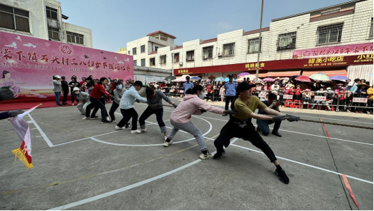 为了进一步丰富我局妇女职工的精神文化生活,增强女职工的凝聚力,3月5日下午组织女同志到棠下镇石头村开展三八妇女节拔河比赛。随着裁判的一声哨响,比赛正式开始。霎时间,呼喊声,雀跃声此起彼伏,选手们紧握绳子,突然发力,紧咬牙关,个个涨得面红耳赤。双方队员都齐心协力、奋勇拼搏,倾斜着身体用尽全力,热情的观众在一旁呐喊助威。两队选手你来我往,场面十分激烈。