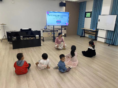 儿童拉丁形体体验课中,儿童在梁老师的带领下感受律动和形体姿态的魅力。