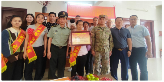 喜报传佳音,军功耀家门。近日,解放军空军某部队、区人武部、区退役军人事务局、杜阮镇人民政府武装部、龙溪村委等部门主要领导组成军地联合送喜报队伍,为荣获三等功的杜阮镇龙溪村现役军人余超健家庭送上立功喜报,让军人军属真切感受到全社会的尊重与关爱。
