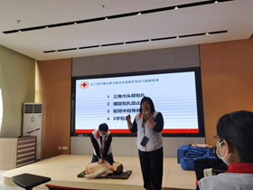 本次培训班分为理论和实操两部分。红十字救护师资给学员们讲述了创伤救护的理论知识,详细学习了心肺复苏、AED的使用、外伤四项包扎处理等。经过紧张有序的练习和考试,共有46名学员参加考试并成绩合格,取得了红十字初级救护员证书。