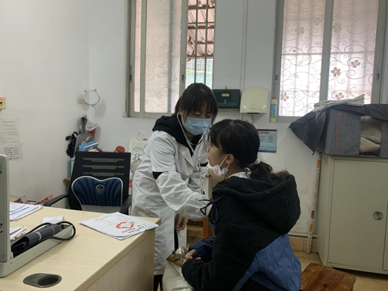 春节期间,她如约来到杜阮镇杜臂村,访视出院后一周内的李女士,为新生儿进行体测、肚脐消毒处理、臀部护理、喂养指导、沐浴指导、接种指导等,又为产妇进行体测、乳汁分泌和宫缩情况检查、切口消毒、产后膳食营养指导等。