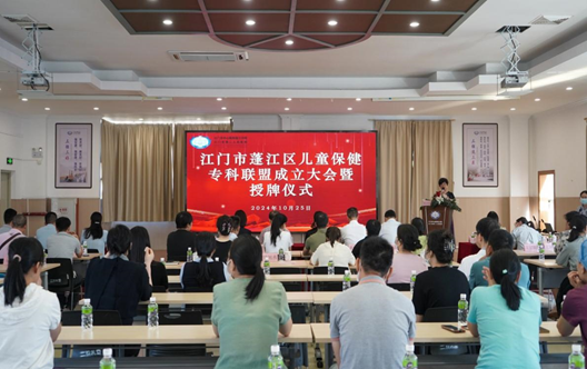 (图为江门市第二人民医院与基层医疗机构组建儿童保健专科联盟签约仪式现场)