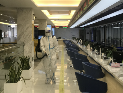 消杀人员穿戴防护服,携带电动喷雾机、84消毒液、一次性酒精棉片等消毒物资对办事群众等候区域、办理业务区域、各楼层电梯、卫生间等开展“地毯式”消杀,尤其对公共区域及办事群众高频次使用物品进行重点消毒,全力保证做到消杀无死角、全覆盖。接下来,我局将继续落实落细消杀、通风等日常清洁工作,全力降低病毒感染风险,构筑好人民群众生命健康安全屏障。