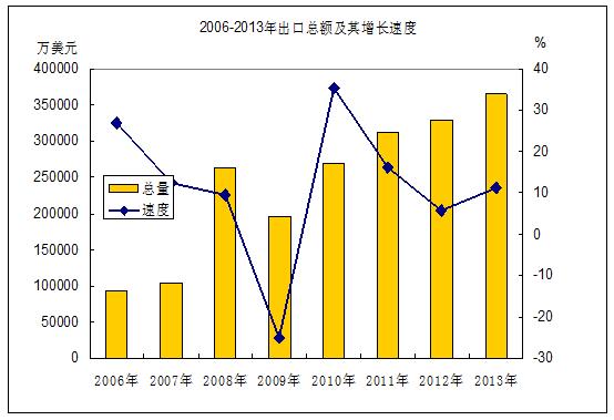 全年进出口总额454407万美元,比上年增长11.45%,其中,进口总额89942万美元,增长12.82%;出口总额364465万美元,增长11.11%。出口贸易中,一般贸易出口303756万美元,增长8.53%;加工贸易出口60671万美元,增长26.24%。从各种经济类型企业出口情况看,国有企业出口10.56万美元,下降74.75 %;三资企业出口116838万美元,增长6.99%;私营企业出口236078万美元,增长9.32%。