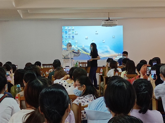 此次培训邀请江门市第二人民医院的技术骨干进行理论授课。授课老师通过案例分析、ppt现场展示等方式,讲解内部大规模人群核酸采样基本流程、鼻咽拭子标本采集技术操作规范、单采和混采检测技术应用、个人防护要求及操作规范、贴标扫码岗工作流程要求等内容。