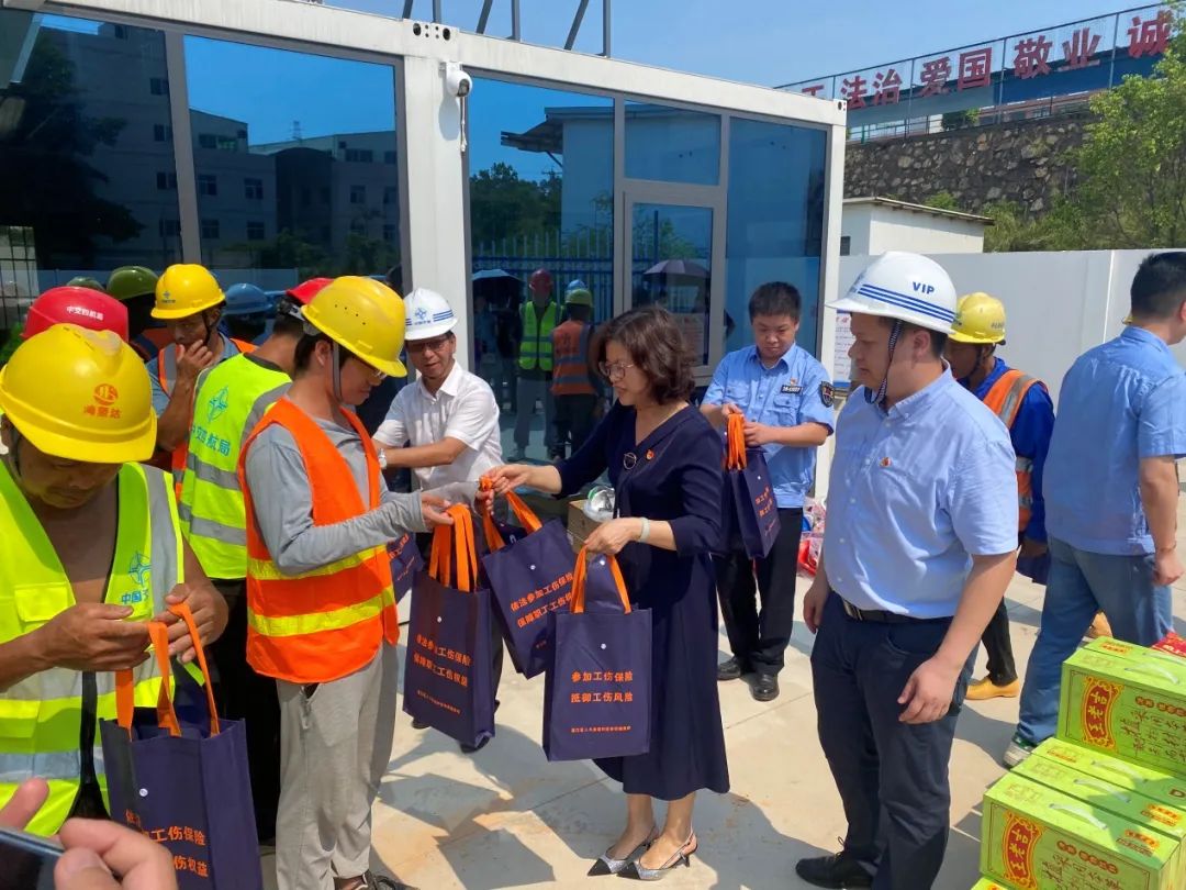 此外,慰问组还向项目施工方详细了解高温天气下对一线劳动者的安全保护和权益维护等情况,宣传《保障农民工工资支付条例》《拖欠农民工工资失信联合惩戒对象名单管理暂行办法》等法规政策,并要求项目施工方要强化安全主体意识和主体责任,在严格做好防暑降温相关劳动保护措施的前提下,保障工程有序推进,切实保障劳动者生命安全和健康。
