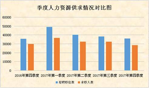 根据对企业用工及人力资源服务平台信息系统和全市人力资源服务机构的数据进行分析,形成2017年第四季度全市人力资源市场供求状况分析报告。