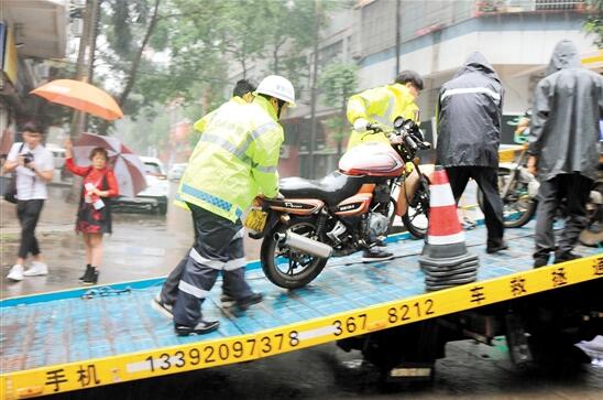 交警大队工作人员们,正冒雨拖移着一辆辆笨重的“僵尸车”,环市街创文专项整治行动——社区“僵尸车”清理行动正式开始。当天上午,不到两个小时的时间里,共成功清理22辆“僵尸车”。