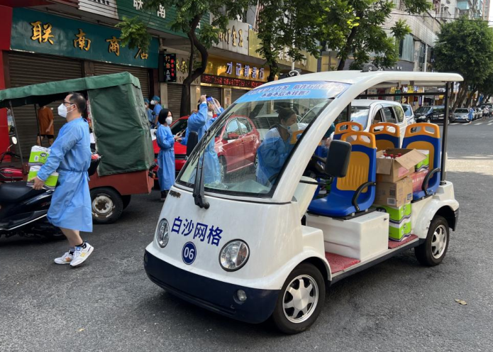 “网格车真的好用啊,平时搭着网格员、驻点医生上门服务和运送物资时,简直如有神助,它已经是我们的防疫一份子啦!”江边社区第一网格网格长洪丽榕说,他们如今的防疫工作离不开网格车,在宣传发动时是“大声公”,在运送物资时是“小货车”,在处理突发事件时又是“风火轮”。