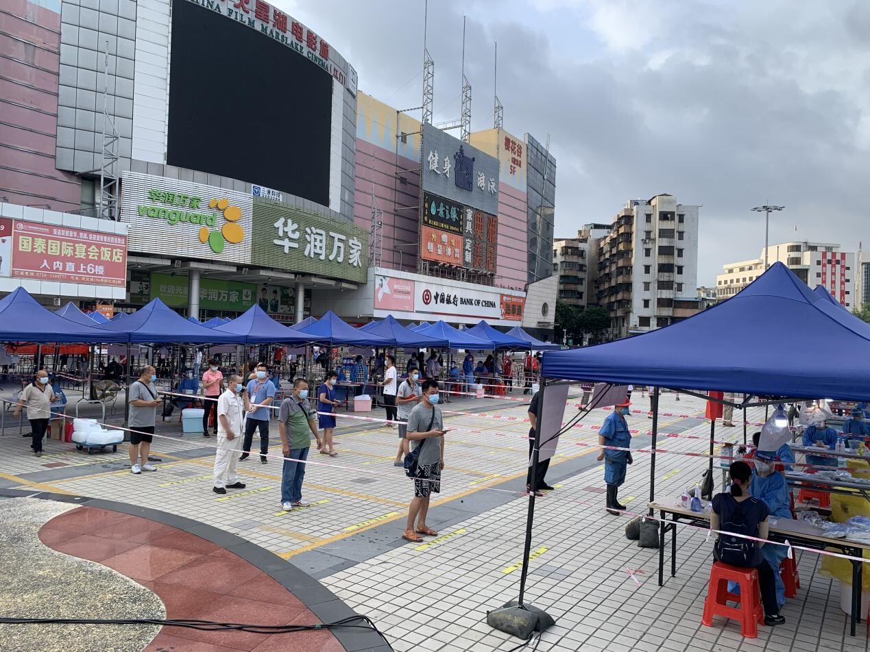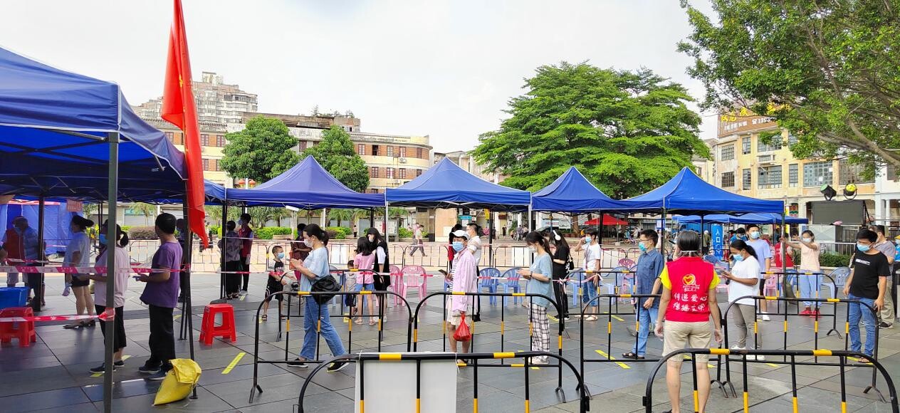 甘棠粤海采样点居民有序排队进行核酸检测,严守一米距离