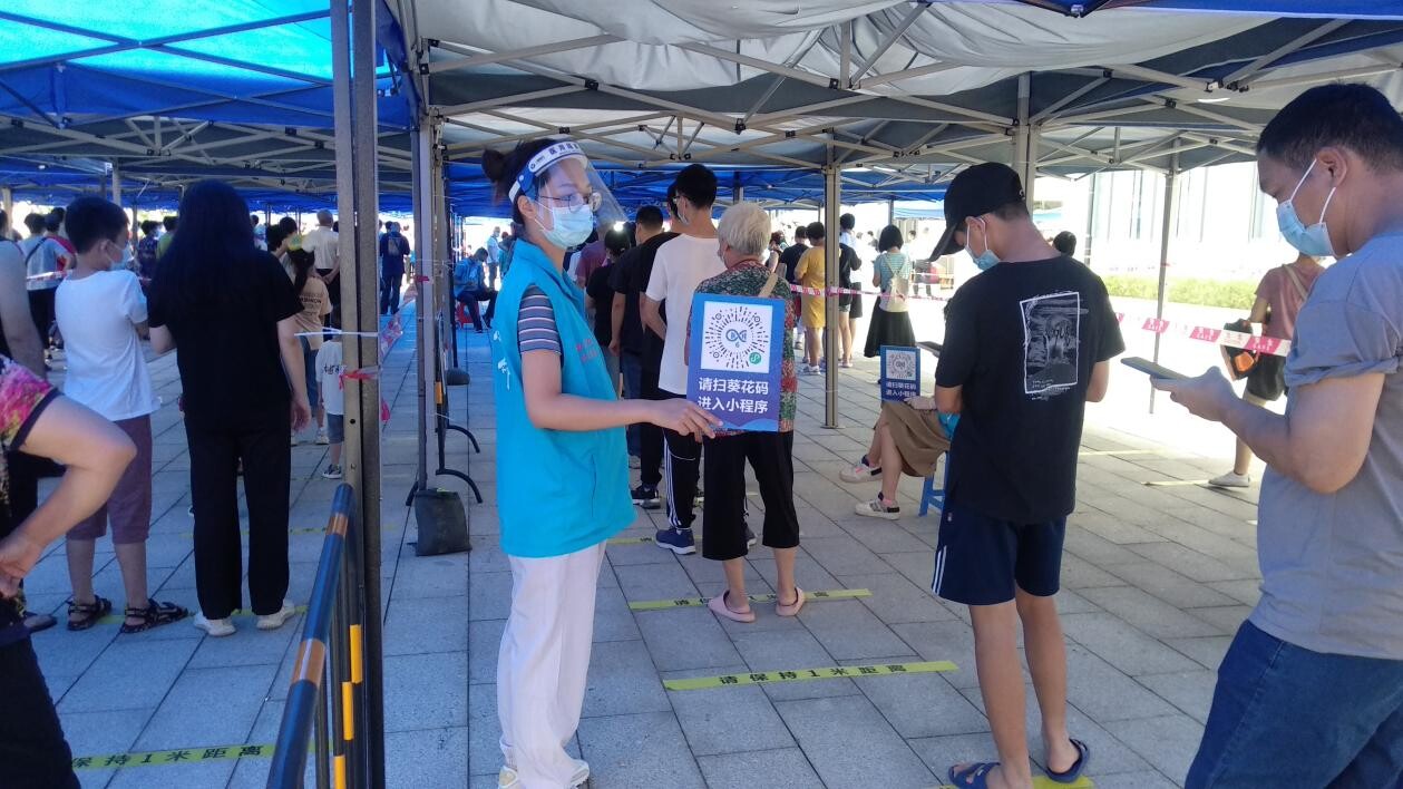 文化城核酸采样点,志愿者们在不同岗位恪尽职守。