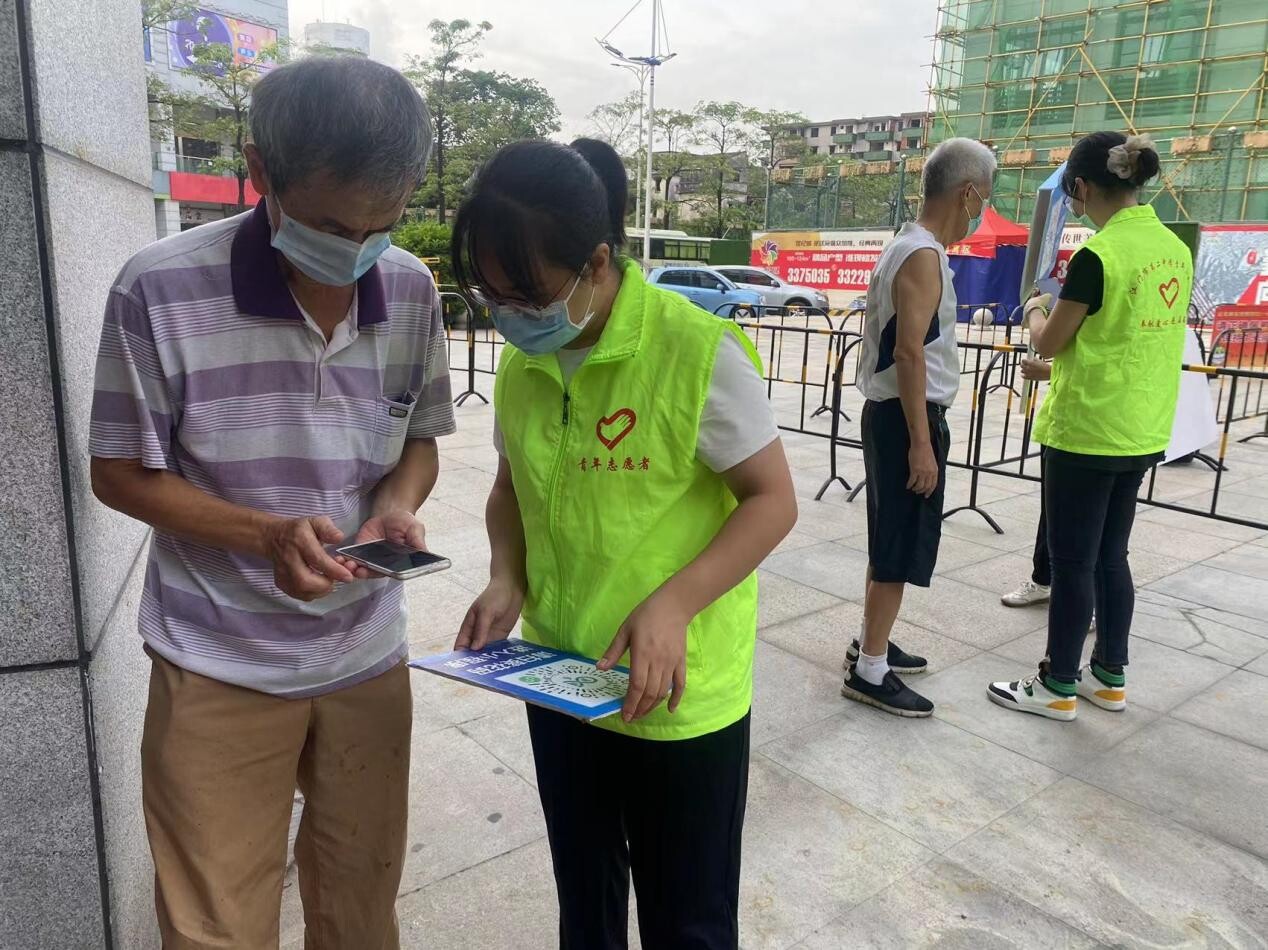 世纪城采样点志愿者们帮长者操作手机生成葵花码