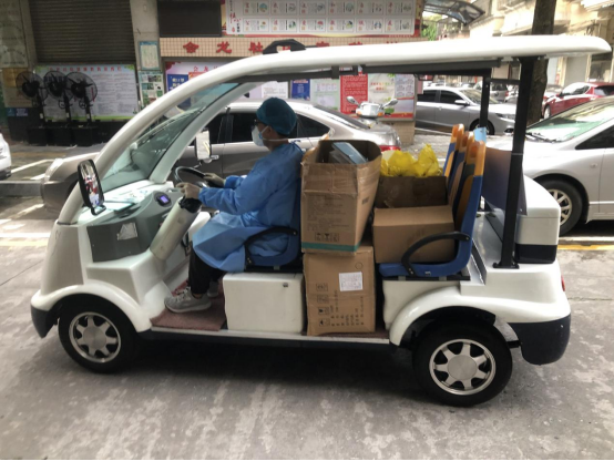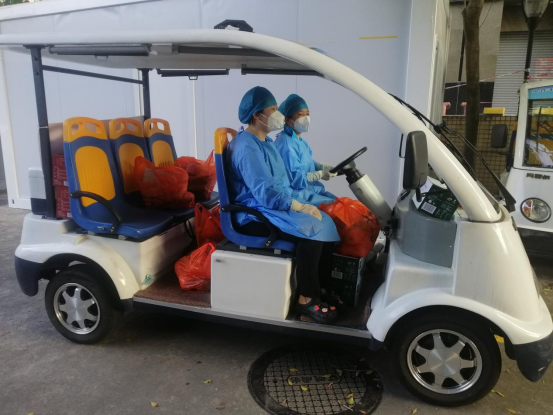 运用电动网格车为中风险区内居民运送生活物资