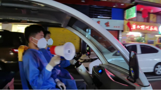 自7.9疫情发生以来,中风险地区实行“人不出区、错峰取物”管控措施,居民可以在限制范围内活动,这就需要居民严格执行个人防护措施和防疫行为规范,防止病毒传播。为大力宣传公民防疫行为规范,社区网格员把“大声公”“移动音箱”等设备装上电动网格车,在沿着大街小巷行进途中,循环播放录制好的《公民防疫行为准则》和用三种方言录制的接地气的“喊话”,劝导居民要自觉遵守防疫规定,佩戴好口罩、不扎堆、不聚集,做好个人防护措施。同时,电动网格车在核酸检测时也是宣传发动的好帮手。